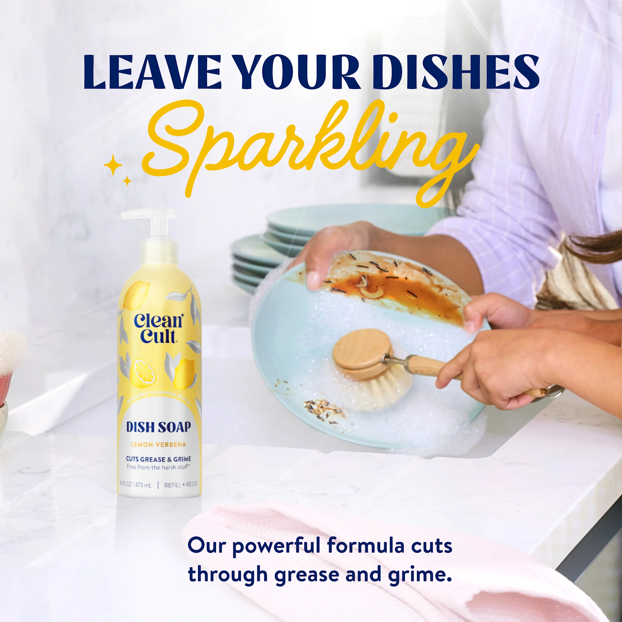 The aluminum bottle not only looks divine by your sink, but it can be refilled and reused forever. Once empty, simply top up using our paper-based refills and enjoy sparkling dishes for all eternity. Refill. Reduce. Rejoice!